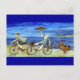 Ein Tandem-Fahrrad nimmt eine Familie auf ein Abenteuer und reitet vorbei am blauen Ozean, am Strand, am offenen Horizont und an einer Insel. Ein Mann sitzt vorwärts, während eine Frau faul auf ihrem Sitz sitzt, Füße hoch und hält einen Sonnenschirm. Die beiden Terrier-Hunde sitzen Ohren, die in einem Korbanhänger flattern. Dieses originelle Kunstwerk ist lustig, hell und farbenfroh und in gouache & ink an Bord gemalt