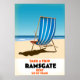 Besuchen Sie Ramsgate, das Vintage Plakat eines Retro-Liegestuhls im Kent-Stil am Sandstrand.