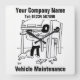 Garagenuhr. Förderung Ihres Fahrzeugwartungsgeschäfts. Machen Sie es persönlich, indem Sie Ihren Firmennamen und Ihre Telefonnummer eingeben.