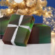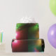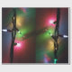 Urlaubspapier oder Weihnachtsverpackung mit einem originalen Foto von bunten, hellen Auras und wirbelnden Schatten. Die perfekte Art, dieses perfekte Geschenk zu verbergen. Rote, grüne, gelbe und blassblaue Lichter mit interessanten Schatten.