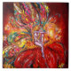 Farbenfrohe und skurrile Acrylmalerei in leuchtendem Rot.