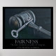 Hölzerne Richter's Gavel und Messing Skelett-Schlüssel. Das Wort "Fairness" zusammen mit einer Definition des Wortes.