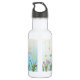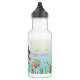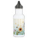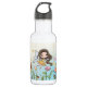 Braun Haar Märchenjunge kleine Edelstahl Wasserflasche für ein kleines Mädchen personalisiert mit ihrem Namen. Es zeigt eine Blumenillustrierung mit niedlichen Schmetterlingen, Bienen, Ladybugs, Pilzen, Sternen, Sonnenblumen, Rose und Tulpen.