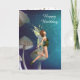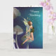 Hübsche mystische Fee, die über zauberhafte Pilze in den Nachthimmel fliegt. Eine niedliche Karte, auf der steht: "Möge deine Märchen wahr werden".