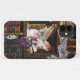 Zwei Kätzchen und eine Fee sitzen auf einem Bücherregal voller Bücher für Ihre magische Katze.