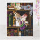 Zwei Kätzchen und eine Fee sitzen in Bücherregalen voller Bücher für magische Katzen.