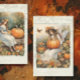 1 von 4 aufeinander abgestimmten Vertikalbildern, Dekoration für Erntedank-Wanddekoration. Ein wunderschönes Vintages Blumenwerk mit einer Fee, die einen Herbstkürbis umgibt von Herbstlauben, Kürbissen und Blume über einem cremefarbenen rustikalen Holz mit eleganten Schriftzeichen und Wanddekorationen, die sich perfekt für das Kunsthandwerk und die Dekoration von Möbeln eignen, ist das Werk eines international anerkannten Künstlers und Designers, Audrey Jeanne Roberts.