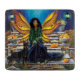 Eine Fee mit orangefarbenen und gelben Flügeln, die auf Steintreppen sitzen und vielleicht zum Reich der Fee führen. Die Afrikanische Amerikanische Märchen ist nicht allein, sie ist am Herbsttag mit ihrem Schutzhelden Doberman.