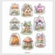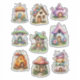 A charming collection of fantasy homes designed to bring a touch of magic to planners, journals, scrapbooks, and craft projects. Each sticker features a unique architectural style—some perched atop twisting roots, others nestled beneath oversized mushroom caps, and still others glowing from within with warm cottage windows.