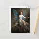 Eine niedliche Fee zeigt ihr Kleid, das aus gerecycelt und wieder gewonnener Fantasiekunst hergestellt wurde