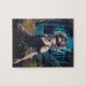 Eine Fee in einer Augenbinde in einem Wald mit minimalen Farben wie schwarz, blau und gold