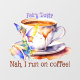 Wasserfarbene Kaffeetasse mit einer Fee, die auf der Untertasse sitzt. Wer läuft auf Märchenstaub? Keine Feen, nicht du! Wir laufen alle auf Kaffee!