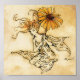 Fee mit Blume Poster. Fantasy-Illustration. Arthur Rackham war einer der großen Illustratoren des frühen 20. Jahrhunderts und machte Illustrationen für die Alice im Wunderland, die Drei Bären und Peter Pan. Das ist eine schöne Fee aus seiner Peter Pan Serie. Die Fee sitzt in einem fließenden Gewand mit wilden Haaren, während sie eine gelbe Blume hält. Ein großartiges Geschenk für Arthur Rackham, Fantasy Art und Vintage Märchenmalereien.