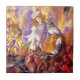Keramik Tile mit John Anster Fitzgerald's (1819-1906) Gemälde The Concert. Zwei schöne Feen spielen Musikinstrumente und singen für ein Konzert. Farbenfrohe rote und blaue Vögel beobachten die Aufführung. Ein wunderbares Geschenk für Märchenfreunde und Viktorianische Kunstsammler!