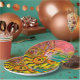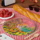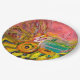 Whimsikale, farbenfrohe und lebendige Acrylmalerei auf Leinwand in kräftigen Rosa, Violett, Rot, Grün, Gelb, Blau, Rosa, Weiß von Bulgan Lumini (c).