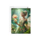 Eine hübsche Fee hält einige Blume in einer Farngrotte.