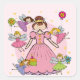 Kleine Feen umgeben eine hübsche Märchenprinzessin auf den Aufklebern der Märchenprinzessin, die zu unseren Geburtstagseinladungen und Briefmarke passen.