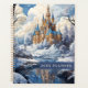 Dieser Planer zeigt eine Winterillustrierung eines Märchenschlosses mit eleganten blauen Türmchen, inspiriert von deutschem und französischem Design. Die Burg ist von schneebedeckten Bäumen umgeben und davor fließt eine kleine Bucht. Das Design ist auf der Vorder- und Rückseite gleich. Personalisieren Sie die Front mit dem laufenden Jahr.
