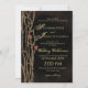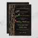 Dunkle Märchenwald-Trauung Einladung mit zwei Rose Knospen in einer Dornrebe, dunkelbraun mit goldenen Schriftart mit zwei gegensätzlichen romantischen rote Rosen.