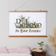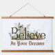 This enchanting wall hanging tapestry features the word “Believe” brought to life through a dreamy, storybook-inspired illustration. A softly painted fantasy landscape unfolds within the lettering—complete with a fairytale castle, mystical creatures, forest details, and gentle earth-toned hues—creating a sense of wonder, imagination, and quiet magic.