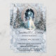 A beautiful and magical forest scene with fir trees covered in snow forming a pathway leading up to a magical, glowing portal. An angelic princess is standing in front of the portal staring in. She is wearing a flowing white regal ballgown and is preparing to enter the magical Realm. The graphics are placed on a pale dusky blue background infused with white snowflakes and ethereal whimsy. This downloadable and printable invite is ideal for a fairytale fantasy birthday or winter wonderland theme cleebration. The templates may be personalized to suit your requirements.