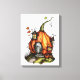 Das Bild zeigt ein weißes, märchenhaftes Haus in Form eines großen, lebhaften Orangenkürbis. Der Kürbis wurde in ein gemütliches Wohnhaus verwandelt, mit einer Holztür an der Vorderseite, zwei kleinen Fenstern an den Seiten und zwei malerischen, turmähnlichen Strukturen oben mit roten Dächern. Das Haus ist umgeben von zwielichtigen Weinbergen und Herbstblättern, was die zauberhafte und zauberhafte Atmosphäre verstärkt. Die Umgebung bietet eine ruhige, waldreiche Umgebung, die sich perfekt für eine Märchenschmiede oder ein magisches Geschöpf eignet.