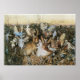 Dieses Fantasy-Gemälde in Aquarell wurde von John Aster Fitzgerald gemacht. Es zeigt eine Wiese voller winziger Feen, die einen kleinen braunen Hase umgeben. Während die meisten Farben dezente Brauntöne sind, werden die Feenflügel in heller Blues hervorgehoben