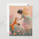 Eine wunderschöne Fee und ein roter Fuchs in den Frühlingsblumen