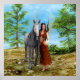 Schöne Fee mit einem Märchen Einhorn in einem grünen Fantasy-Wald. Perfektes Geschenk für alle, die Fantasie und Märchen Lieben