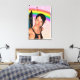 3D digitale Darstellung einer schönen kleinen Fee unter dem Regen auf einem Regenbogen-Hintergrund