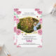 Ein schöner und magischer großer Baum mit nach außen gestreckten Ästen ist umgeben von kleinen zauberhaften Glühwürmchen und Lichtern. Der Baum ist in einem Wald und hat üppiges grünes Blattwerk und hübsche Schmetterlinge, die durch die Luft fliegen. Die Waldszene wird von einem sechseckigen Imitat goldenen geometrischen Rahmen gerahmt, der eine hübsche dunkelhaarige Fee oder Fee mit blauen Flügeln trägt, ein blaues Sommerkleid trägt, stehend am Rand des Rahmens, der in den Wald schaut. Hübsche, rosa Blume der wilden Rose bilden einen Rand dieser Einladung. Ideal für kleine Mädchen, die sich auf mythische Geburtstagsfeiern treffen. für bezaubernde Babydusche-Veranstaltungen und Märchengeburtstage.