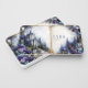 Define your brand with limitless imagination and the magical elegance of a hidden kingdom using this captivating business card. The design presents a dual scene on an open antique book motif with a creamy page texture and decorative floral vines along the central spine. The left page showcases a majestic stone castle with towering spires, nestled among dark pine trees and a small cascading waterfall. The entire scene is framed by an opulent border of layered purple, lavender, and blue flowers, creating a vibrant, romantic archway. This artwork blends rich, magical realism with serene natural beauty and a unique storybook format, conveying a sense of wonder, romance, and high-end elegance that makes your card truly unforgettable. This business card is ideally suited for a fantasy novelist or publisher seeking distinctive, narrative-driven branding, a luxury event planner specializing in themed celebrations or fantasy weddings, or a boutique hotelier wanting to convey a magical, unique setting. It would also perfectly suit a fine art print seller focused on mystical or romantic works, or an exclusive floral designer emphasizing rich, abundant arrangements. The card's captivating combination of enchanted scenery and abundant purple florals ensures it is versatile for any sophisticated announcement, a refined gift enclosure, or an elegant invitation.