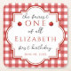 Fairytale Prinzessin Fairest One Red Gingham Karierte Geburtstagspapier-Untersetzer - Adorable Untersetzer zum ersten Geburtstag mit rotem Gingham-Hintergrund und Vintager Etikettenform. Der Begriff "das schönste von allen" wird von zwei roten Äpfeln gerahmt. Inspiriert von der klassischen Prinzessin Little Snow White von den Grimm-Brüdern. Personalisieren Sie, indem Sie den Namen Ihres kleinen Mädchens und das Datum des Party hinzufügen.