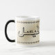 Wenn sie kalt ist, ist es gerade eine einfache schwarze Tasse. Wenn Sie jedes heiße Getränk (Wasser, Tee, Kaffee, etc.) addieren, kommt Ihr Name zum Leben in den vibrierenden Farben.
