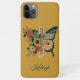 iPhone 11 Pro Max Gehäuse mit hübschen, warmen, gelben und orangefarbenen Blume auf einem rustikalen Christlichen Kreuz mit einem farbenfrohen grünen und orangefarbenen Schmetterling auf einem senfgelben Hintergrund. Im Text steht "Glaube". Personalisiert mit Ihrem Namen in einem eleganten Skript-Schriftart. Kontaktieren Sie mich, um Hilfe bei Ihren Anpassungen zu erhalten oder um zusätzliche Matching- oder Koordinierungsprodukte anzufordern.