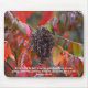 My original artwork on this nature mouse pad is featuring my photograph of the fruit of a Flame Leaf Sumac tree in Autumn. A bible verse from Galatians 5:22-23 is also on the image for a nod to the faith. The mouse pad is a nice size for comfortable use. It is made of quality materials and printing, and it doesn’t slide around on your surface. It would make a great gift for anyone, especially a church friend or minister.