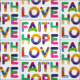 Ein Muster von einzigartigen farbigen dekorativen Text Faith Hope Liebe. Schönes Stück Stoff für jeden. Verwenden Sie bei Bedarf die Option "Anpassen", um das Bild auf einem Produkt zu positionieren oder die Hintergrundfarbe zu ändern. Genießen, kaufen, Spaß haben und glücklich sein. #trust #hope #Liebe #color #text #typography #gewebe #cracraft