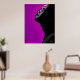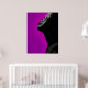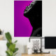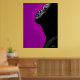 Ein realistisches Schwarz-Weiß-Bild einer schwarzen Frau im Profil, die vor einem lila Hintergrund nach oben schaut. Es wird in deinem Wohnzimmer großartig aussehen.