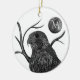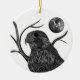Schwarz-Weiß-Kunstwerk eines Wanderfalke mit Vollmond und Baumzweigen. Verwenden Sie die Textvorlage, um dem Mond ein Initial- oder Monogramm hinzuzufügen. ♡ Idyllfire