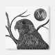Schwarz-Weiß-Kunstwerk eines Wanderfalke mit Vollmond und Baumzweigen. Verwenden Sie die Textvorlage, um dem Mond ein Initial- oder Monogramm hinzuzufügen. ♡ Idyllfire