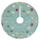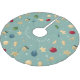Falda para tapar la base del árbol de navidad, puedes escoger entre varios diseños, en este tienes decoración navideña sobre fondo azul. Campanas, estrellas y bolas de navidad en tonos verde, dorado, rojo y azul.