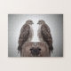 Foto eines Falken auf einem Beitrag und konvertiert, um wie zwei Falken, die einander ansehen.