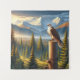 Dies ist eine Abbildung, die einen Falken auf einem Pol zeigt. Der Falken ist von der Natur umgeben, mit Bäumen, Gebirgszügen im Hintergrund. Dieser Wandteppichboden hinter Ihrem Bett gleicht dem Raum im Freien.