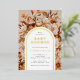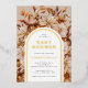 Diese elegante und rustikale, echte Goldfolie-Herbstdusche mit handgemalten Blätter in Aquarellfarben, Orange- und Terrakotta, cremefarbenen und beigen Dahlien und wunderschönen rostfarbenen Rose. Die Rückseite der Einladung hat einen einfachen taupe Hintergrund mit einem koordinierenden Bouquet.