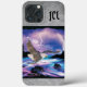 Personalisieren Sie diese einzigartige "One of a Kind" Bald Eagle iPhone Case. Der majestätische Bald-Adler, der während eines Blitzes über einem Mondlicht ragt...umringt von den silbernen Ledergrenzen! Original Art Design von Künstler Kerry Miller.