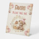 Herbstmädchen Geburtstagsparty Favors Pedestal Sign mit einem bezaubernden Teddybär in einem rosa Hut, Kürbis und Ballons. Weiche Pastellfarben, klassisches Beige, Rosa und helles Braun verleihen dem Hotel ein gemütliches Herbstgefühl. Personalisieren Sie den Text einfach. Kate Eden Art