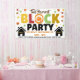 Banner des Neighborhood Fall Street Block Party. Ideal, um Spaß Herbst Partys und Nachbarschaft Block Party Ansammlungen anzukündigen.