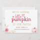 Teilen Sie die Spannung dieser Herbstsaison mit unserer herzerwärmenden Schwangerschaft offenbaren Baby-Ankündigung. Mit der charmanten Nachricht "Einen kleinen Kürbis zum Patch hinzufügen" strahlt diese Karte Wärme und Vorfreude aus. Das boho pampas Gras und der bezaubernde Kürbis bilden den Rahmen für das Foto Ihres Kleinen und machen diese Ankündigung besonders. Genießen Sie den Geist des Erntedanks und feiern Sie die Ankunft Ihres kleinen Kürbiss mit Ihren Lieben in dieser fröhlichen Jahreszeit.