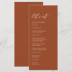 Genießen Sie Ihre Hochzeit im Herbst mit unserem Fall Boho Terracotta Wedding Menu, das sich perfekt für Hochzeiten und Hochzeiten im Western eignet. Diese Speisekarte ergänzt die Hochzeitsthemen Land und Wüste mit atemberaubender Terrakotta und Salbeigrün. Ideal für eine boho terracotta Hochzeit, es fängt das Wesen eines Terracotta Hochzeit Thema. Hochzeit im Herbst-Ideen mit verbrannten Orangentönen, die ein wunderschönes Orangenhochzeitthema schaffen, das die Wärme und den Charme der Saison verkörpert.