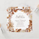 Fall Bridal Luncheon Einladung. Die eleganten, viereckigen Brautpavillons sind mit handbemalten Blätter in den Aquarellen Orange und Terrakotta, cremefarbenen und beigen Dahlien sowie hübschen rostfarbenen Rose auf weißem Hintergrund gestaltet. Finden Sie passende Artikel in der White Autumn Romance Collection.
